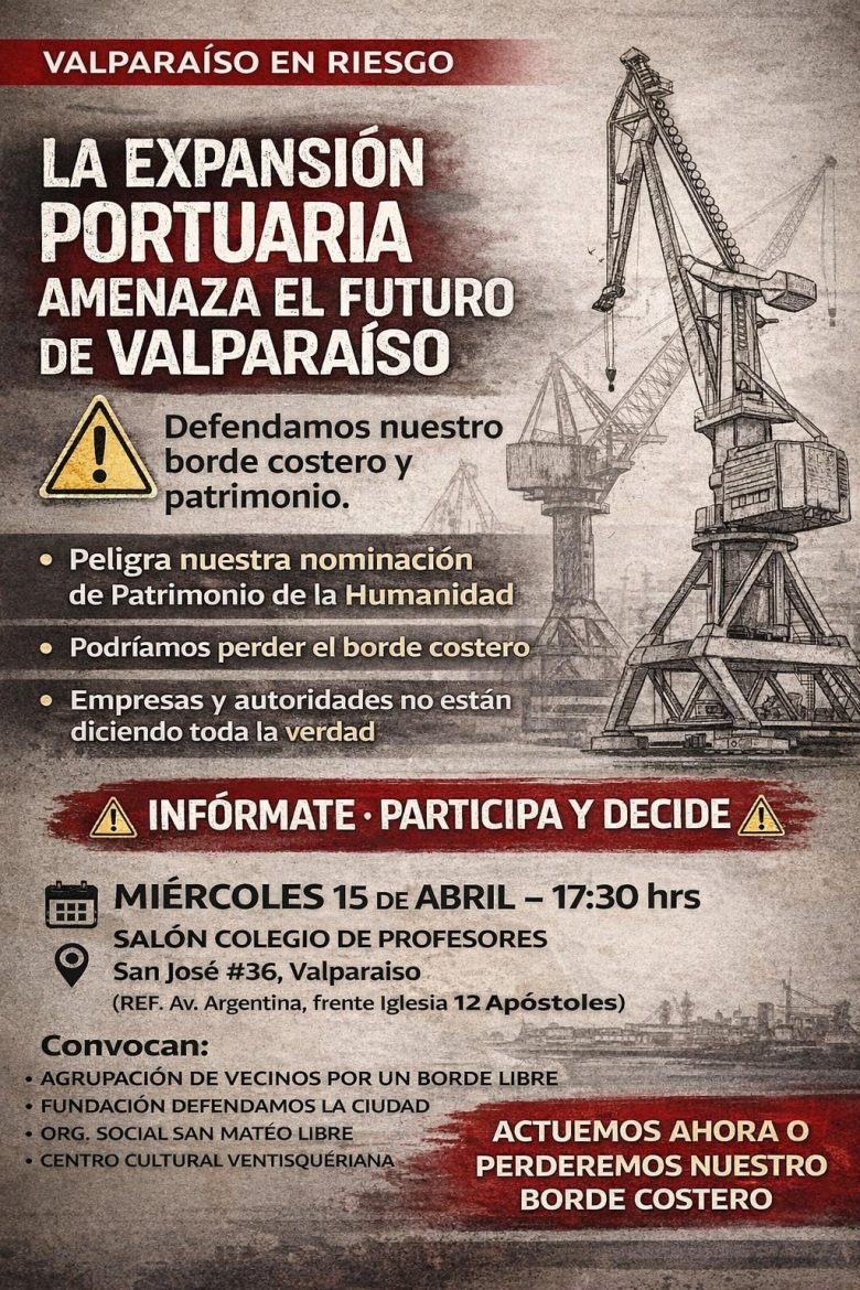 La conversación también abordó el escenario ciudadano frente a estas iniciativas, anticipándose posibles movilizaciones y acciones de organización territorial. En esa línea, se anunció la realización de una reunión informativa abierta a la comunidad, programada para el próximo 15 de abril en el Salón del Colegio de Profesores de Valparaíso, ubicado en San José 66 (frente a la Iglesia Doce Apóstoles), con el objetivo de informar, dialogar y coordinar acciones en torno a esta temática.
