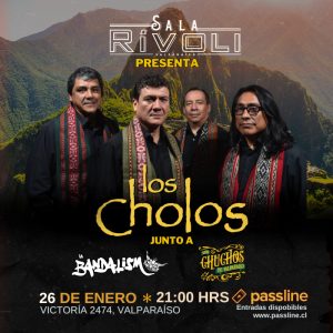 insert_link Entrevistas LA EMBLEMÁTICA AGRUPACIÓN LOS CHOLOS LLEGAN A SALA RÍVOLI JUNTO A LA BANDALISMO Y LOS CHUCHOS todayenero 25, 2024 1